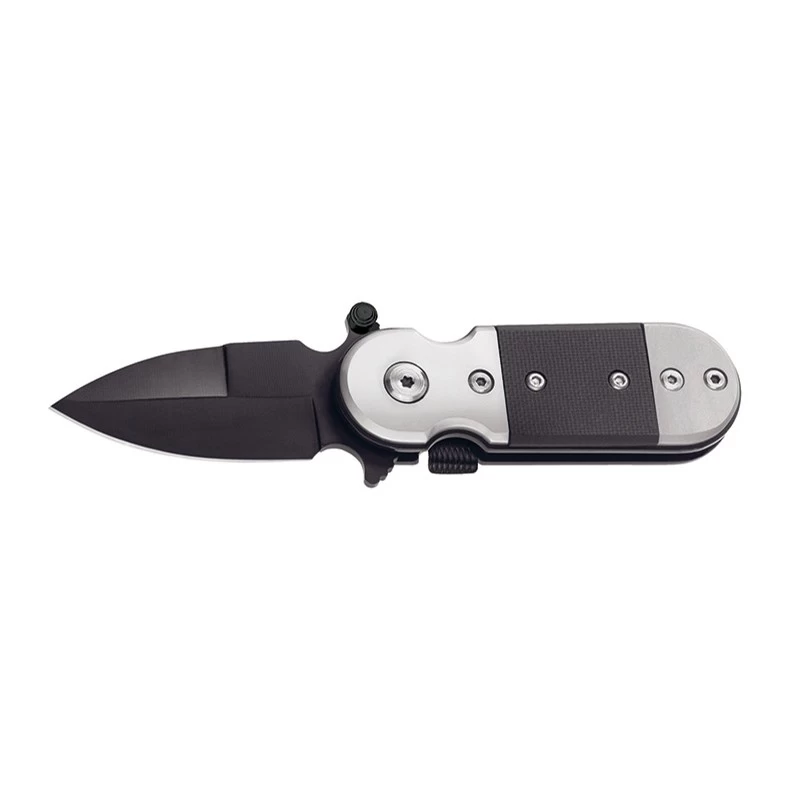 Le Böker Magnum Black Lightning est un mini couteau automatique au design futuriste. Sa très petite taille (longueur de 75mm) permet de l’emporter facilement n’importe où, d’autant plus que son poids n’excède pas les 100 grammes. Son manche est fait d’acier inoxydable finition sablée, ainsi que de G10 coloris noir au centre, pour un aspect des plus élégants. Le clip de poche vient confirmer la très grande facilité de port quotidienne.