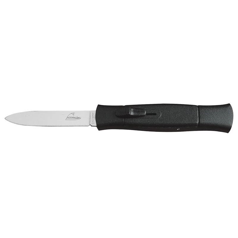 Le Consorzio Coltellinai Medio 252 est un couteau automatique Out The Front (OTF) caractérisé par un manche noir fabriqué exclusivement en résine synthétique. Douce au toucher, la poignée assure une prise en main toujours très confortable. N’oubliez pas que ce couteau automatique OTF est relativement compact, et par conséquent assez facile à transporter au quotidien. Glissez-le dans votre poche ou dans votre sac pour l’avoir en permanence à vos côtés lors des déplacements et mouvements ! Comme tous les couteaux automatiques OTF, le Consorzio Coltellinai Medio 252 intègre un bouton ergonomique servant à éjecter/rétracter la lame droit devant. Une lame qui d’ailleurs, est fabriquée en acier inoxydable 440 (profil spear point) et mesure 83mm de longueur, ni plus ni moins. Possibilité de la personnaliser pour se faire plaisir ou offrir le couteau automatique OTF Consorzio Coltellinai Medio à un ami. Fabrication Italienne à Maniago. Existe également en version manche synthétique avec mitres argent (voir accessoires conseillés ci-dessous).