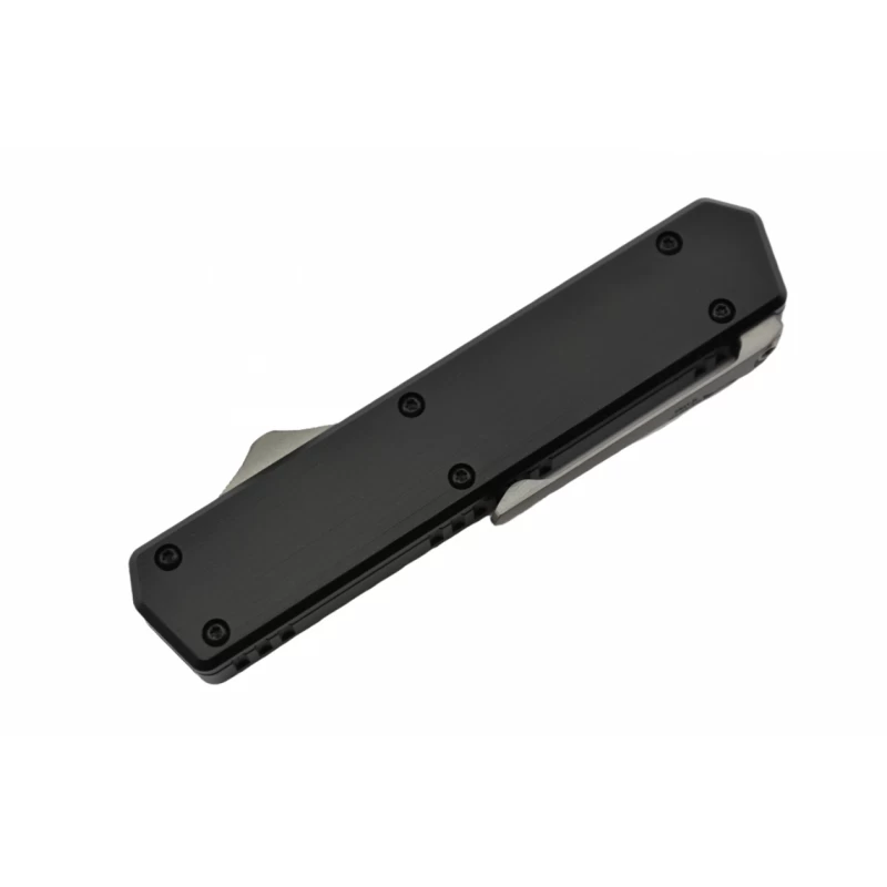Le couteau automatique sĂ©duit pour son design simple mais Ă©lĂ©gant couplĂ© Ă de très bonnes performances. Il est Ă©quipĂ© d’une lame de forme drop point, longueur 8cm, conçue en acier VG-10 à l’origine d’un très bon tranchant. Comportant une rainure sur la partie supĂ©rieure, cette dernière est aussi enrichie par le logo de la marque. PossibilitĂ© de gravure en supplĂ©ment.