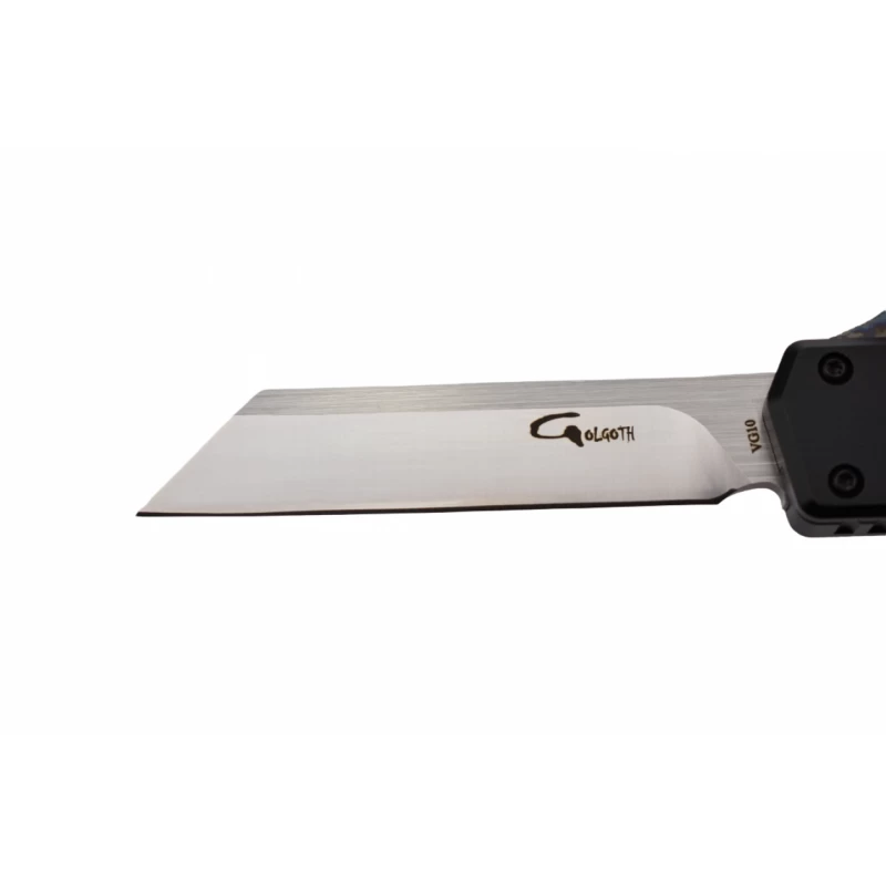 Découvrez le Golgoth G13W+, un couteau automatique OTF à double action conçu pour allier style et performance. Avec sa lame Wharncliffe en acier VG10 de 80 mm de longueur, ce couteau offre une coupe précise et durable. Le manche en aluminium anodisé noir de 115 mm assure une prise en main confortable, tandis que le bouton et le clip en titane anodisé crazy ajoutent une touche esthétique unique. Compact et facile à utiliser grâce à son mécanisme OTF, le Golgoth G13W+ est le choix idéal pour un usage quotidien ou en plein air. Gravure sur lame possible en option.