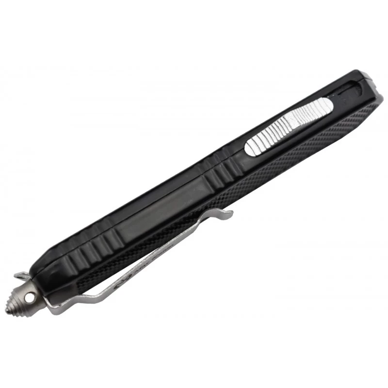 L’un des principaux atouts du Max Knives MKO46DT est clairement sa lame à ouverture frontale, qui se déploie à très vive allure par l’avant sous la commande d’un bouton à faire coulisser. Ce dernier se situant sur le côté du manche en aluminium noir, texturé pour que l’ergonomie soit toujours optimale. La poignée transportable de 14cm comprend un clip ceinture réversible décoré par le logo Max Knives ainsi qu’un brise-vitre s’avérant être au combien utile lors des situations urgentes.