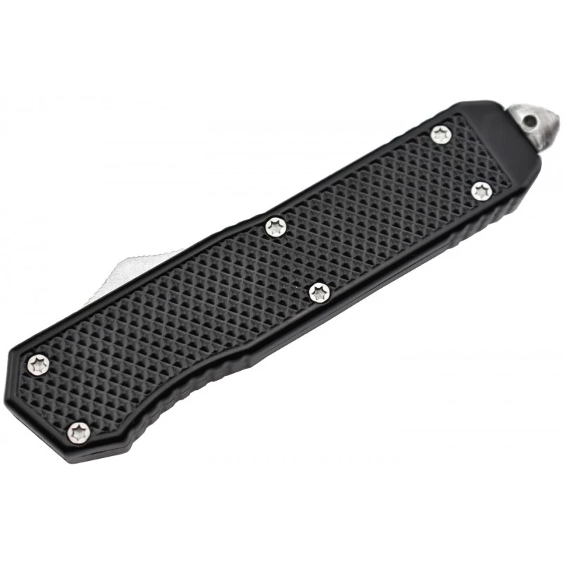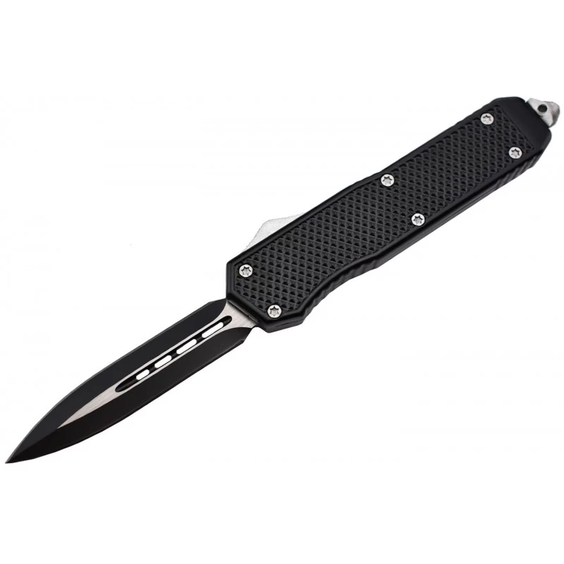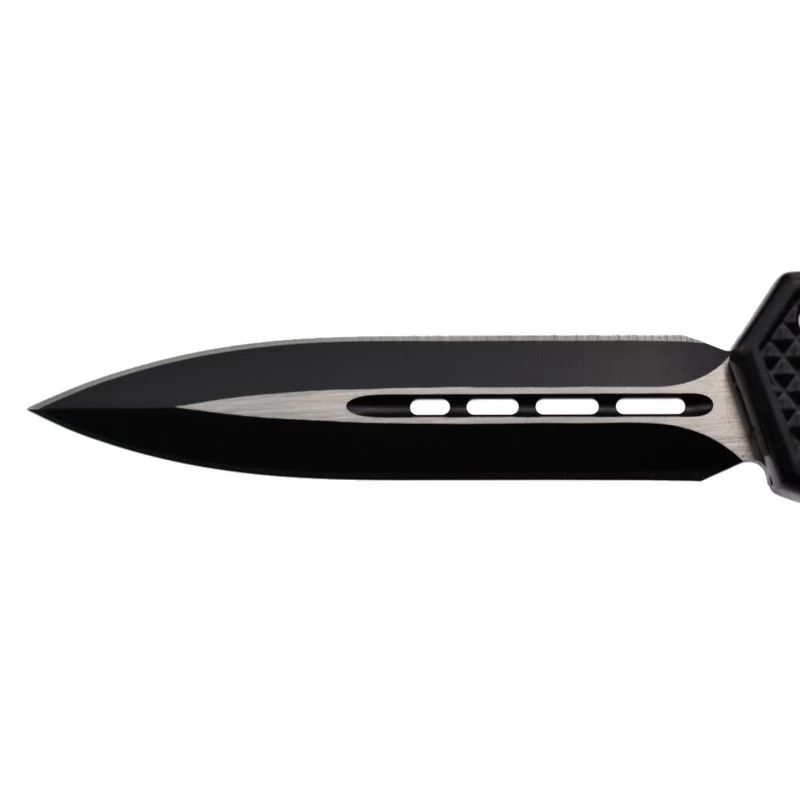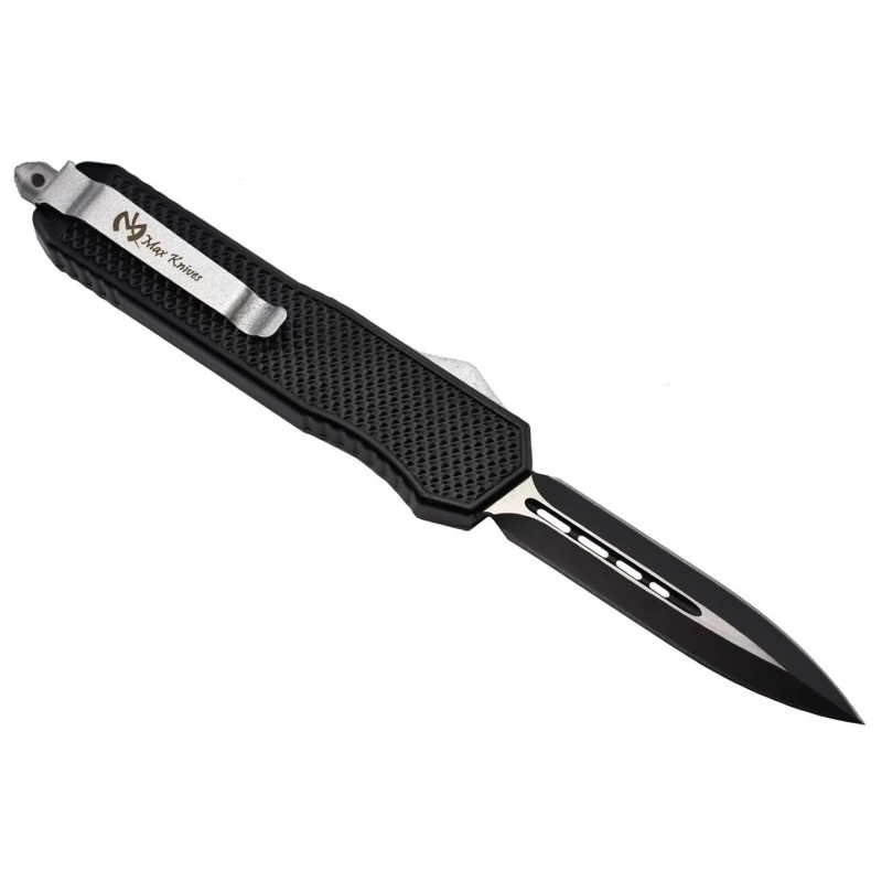Le Max Knives MKO46DT est un couteau automatique OTF qui ne vous décevra jamais sur le terrain. De style tactique, il bénéficie d’un tranchant double, orchestré par une lame de forme spear point conçue en acier inoxydable. D’une longueur de 9cm, elle est finement ajourée au niveau du centre, par des formes rectangulaires aux coins arrondis dont les tailles sont de plus en plus grandes. Bicolore (coloris noir et gris), la lame séduira également la galerie par son design atypique.