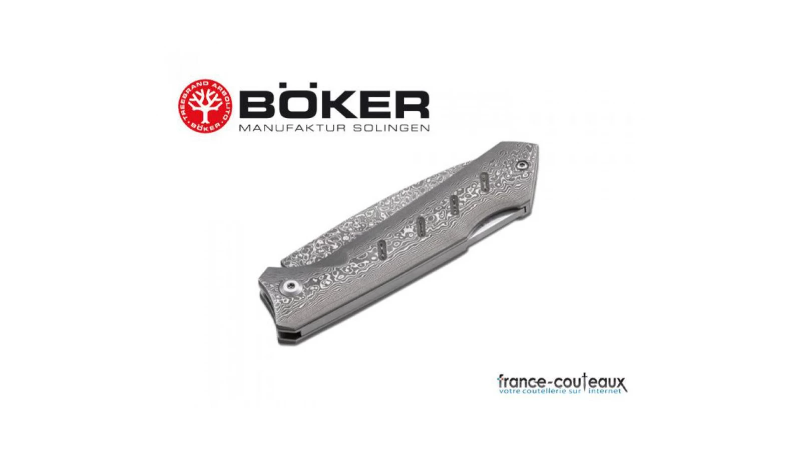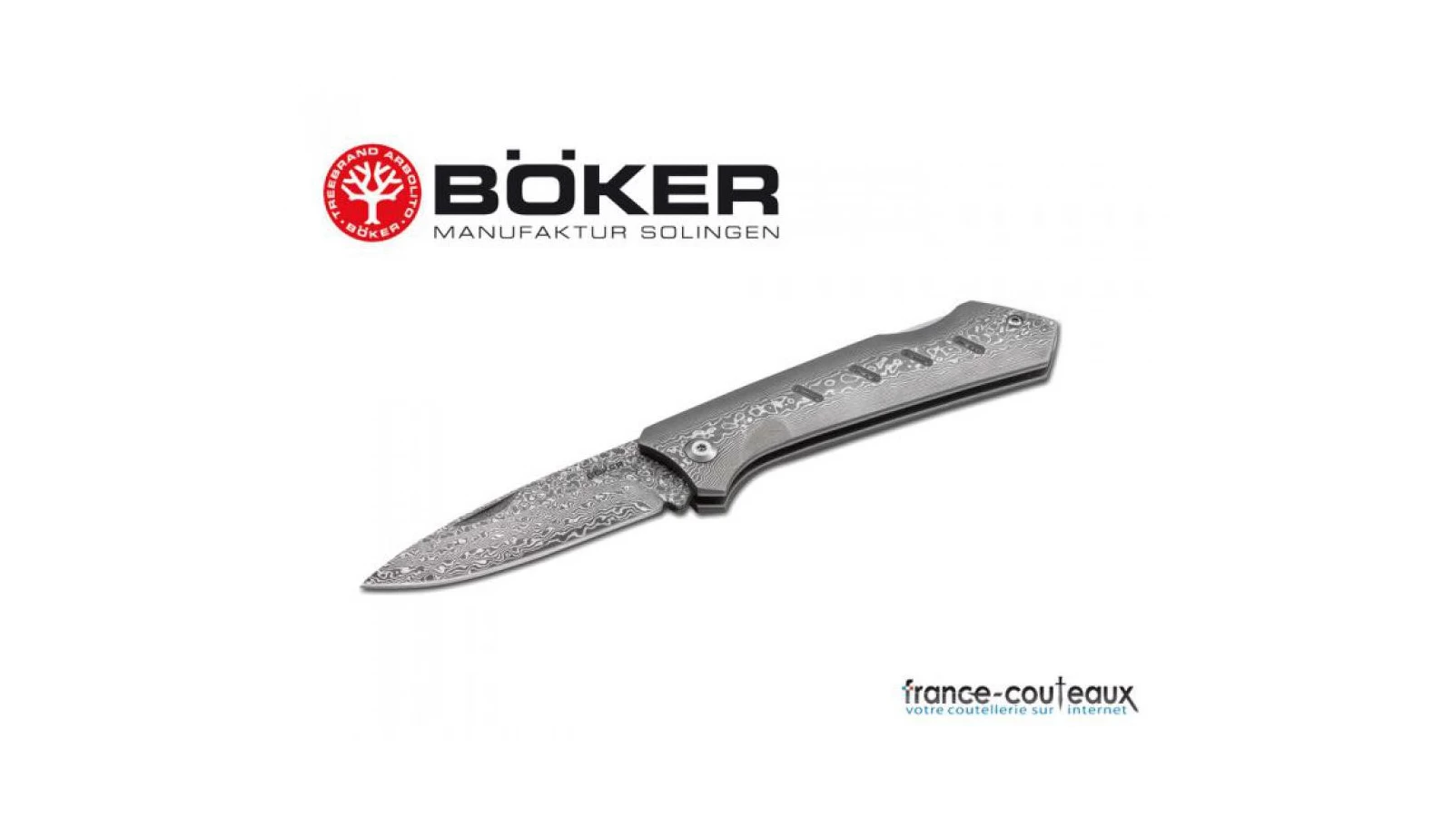Le couteau Boker Damascus Dominator est aussi solide qu’élegant. La gamme Boker Plus dispose d’une lame et d’un manche damassés de 37 couches. Le damas a comme caractéristique la singularité au niveau apparance visuelle. Le système de blocage de lame s’éffectue par Liner Lock. La lame se replis par simple pression du bouton se situant sur le dos du manche.