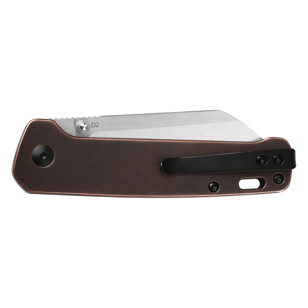 Le couteau de poche Penguin Manche Cuivre Stonewash QSP est également équipé d’un clip réversible pour un transport facile et sécurisé.
