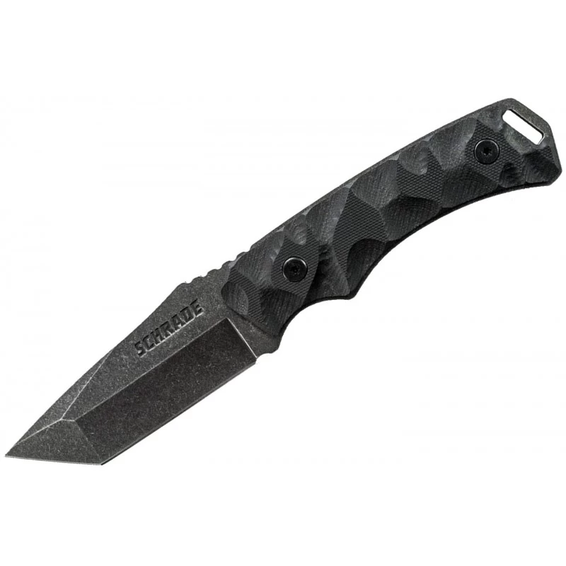 Le SCHF15, signé Schrade, est un couteau fixe idéal pour la survie ou le bushcraft. Il possède une lame de forme tanto, à la construction pleine soie (full-tang), garantissant force et solidité au quotidien. D’une longueur de 86mm, la lame est fabriquée en acier 8Cr13MoV à haute teneur en carbone. Elle présente une finition blackwash et s’avère être marquée par l’inscription “SCHRADE”.