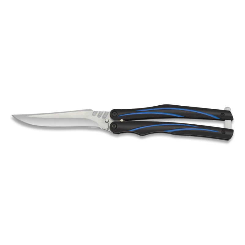 Conçu en Espagne, ce couteau papillon Martinez Albainox référence 02135 n’a pas fini de vous surprendre. Vous apprécierez énormément son design original avec un manche noir en aluminium sublimé par de magnifiques courbes bleues. Un design simple mais efficace qui plaira au plus grand nombre ! Le manche se veut également ergonomique : il épouse parfaitement la forme de la main pour des utilisations toujours très confortables. Avec une taille qui n’excède pas les 13cm, ce balisong Albainox est très facile à transporter au quotidien.