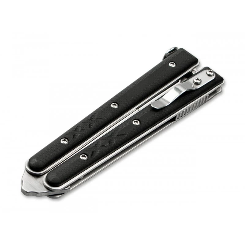 Toujours plus compact, le Böker Plus Balisong Tactical Small est un couteau papillon tactique qu’il vous sera très simple d’emporter au quotidien. Déjà parce que son manche de 108mm de longueur, construit en G10 noir, se paie le luxe d’intégrer un petit clip de poche au dos. Il est important de mentionner la présence de petits motifs décoratifs apportant une touche design des plus subtiles.