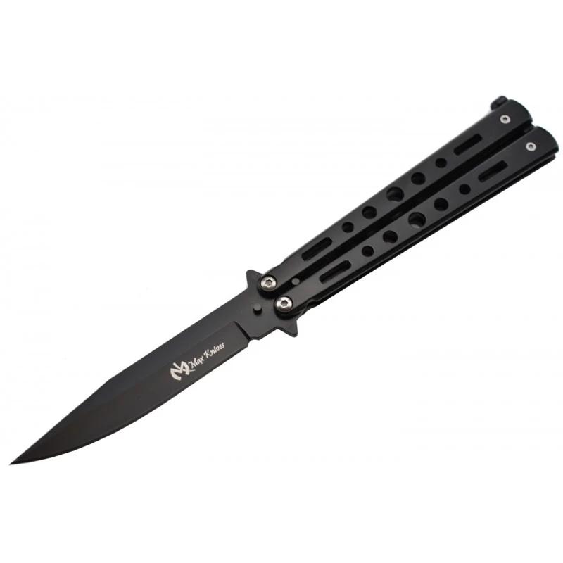 Le P34B de la marque française Max Knives est un couteau papillon qui allie élégance et puissance. D’une longueur de 10cm, sa lame de type Drop point est réalisée en acier inoxydable, avec pour principale caractéristique : une grande résistance à l’oxydation. Son seul tranchant lisse vous suffira amplement pour réaliser des coupes fines et précises. Dans un but décoratif, le nom et le logo du fabricant illustrent la lame dans un blanc qui tranche avec la couleur noire de cette dernière et une police d’écriture fantaisiste.