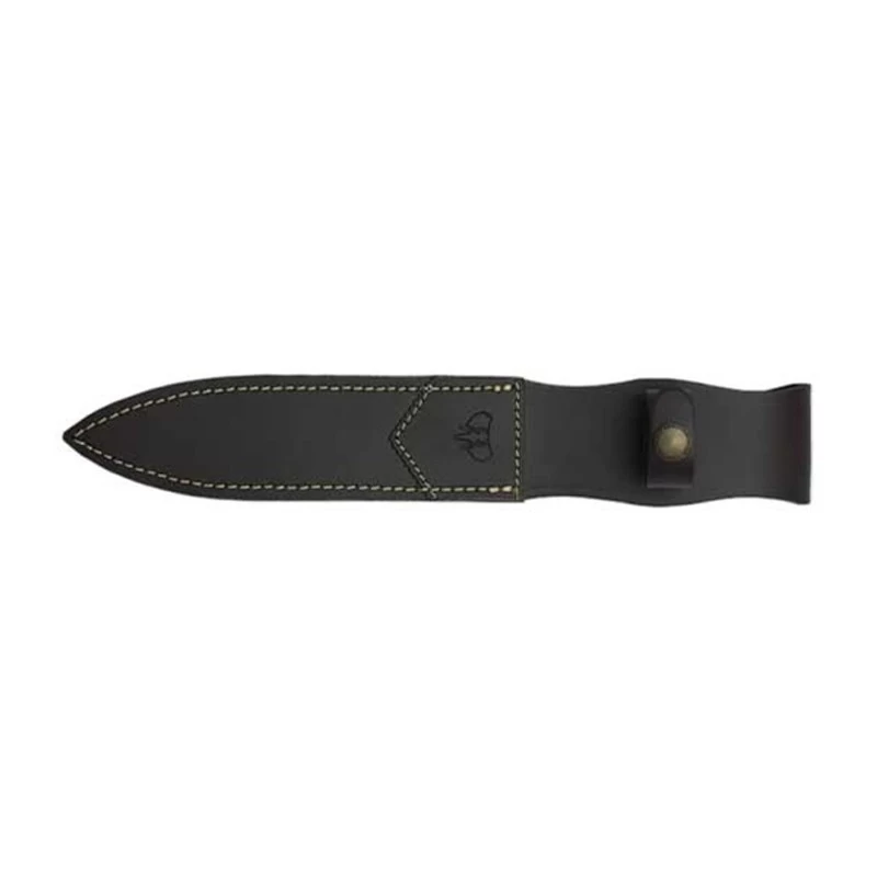 La dague de chasse Cudeman Hunting Dagger, c’est aussi un manche très esthétique et ergonomique conçu en bois olivier. Un joli manche très nature qui assure une prise en main ferme, critère souvent fondamental pour le chasseur. Longueur du manche : 115mm. Cette dague est livrée avec son étui en cuir noir de haute qualité, un étui qui une nouvelle fois, est marqué par le motif éléphant Cudeman. Parfait pour prendre soin de sa dague préférée lors des sessions de chasse !