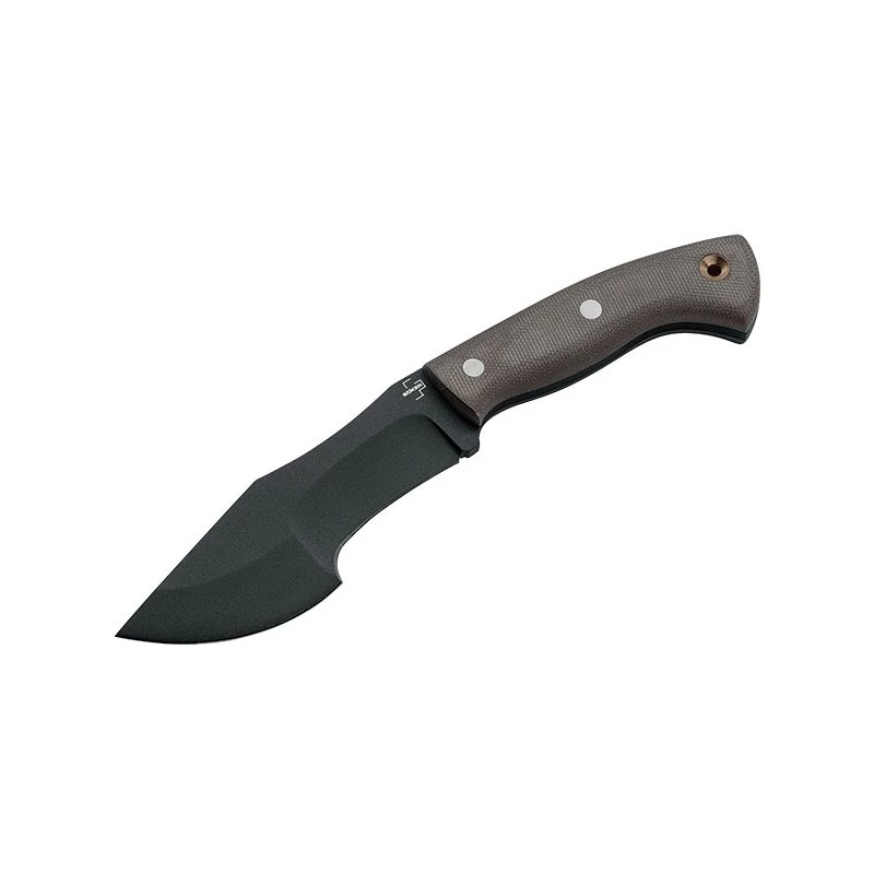 Pour travailler efficacement sans fatigue, vous pourrez toujours compter sur le Böker Plus Mini Tracker. Ce poignard se dote d’une lame fixe de couleur noire en acier carbone 1095 offrant une excellente protection contre la corrosion. Discrètement décorée par le logo Böker Plus dans le coin supérieur, la lame de 135mm de long pour 5mm d’épaisseur est idéale pour hacher, couper, gratter, creuser ou encore lever. Parfaitement équilibré, le poignard Mini Tracker de chez Böker Plus, référence 02BO027, se dote d’un manche en micarta olive finement texturé et très ergonomique. Testez-le par vous-même, vous verrez que son confort de prise en main est très bon, pour ne pas dire excellent. Riveté, le manche intègre aussi un rivet décoratif creux en laiton faisant également office de passe-lacet. De sorte à ce que la transportabilité soit aussi bonne que possible. Le Böker Plus Mini Tracker est livré avec un étui de transport type kydex.