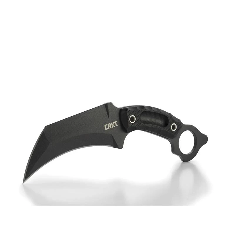 Le Du Hoc CRKT est un colossal poignard fixe, de type karambit, conçu par Austin McGlaun. Son gabarit est assez impressionnant puisqu’il mesure tout de même environ 245mm de long. Idéal pour le self-defense, le Du Hoc 2630 est doté d’une lame à double tranchant, de 125mm de long, en acier SK5 avec revêtement noir anti-corrosion et non-réfléchissant pour l’usage tactique. Puissante et tranchante, la lame est recourbée, à la façon d’un karambit, on observe également qu’elle est marquée par le logo CRKT (Columbia River Knife & Tool). À noter que la lame carbone est fortement enrichie en manganèse. La poignée est fabriquée en G10 noir, elle est texturée et offre une excellente adhérence, prise en main, par tous les temps, ou encore toutes les conditions météorologiques. Un anneau de pouce est présent au bout de la poignée. Le poignard CRKT Du Hoc est livré avec un étui en nylon renforcé de verre noir avec clip compatible MOLLE, grâce à lui, le transport sera beaucoup plus simple !