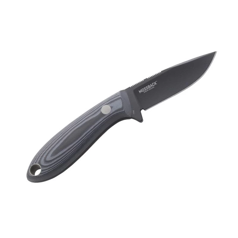 Rien qu’avec son nom, on comprend que le Mossback Hunter se destine pour la chasse, ou encore les chasseurs. C’est un couteau fixe, type poignard, conçu par Tom Krein, un spécialiste de l’anatomie des hommes mais aussi des animaux. Quel que soit l’usage, le CRKT Mossback Hunter offre une grande puissance de coupe grâce à sa lame noire de 8cm de longueur en acier SK5. Une lame drop point qui convient notamment pour chasser le cerf, le chevreuil et autres gibiers. Sa poignée coloris gris/noir en G10 tient parfaitement bien dans la main, il ne faut pas oublier que l’ergonomie est un enjeu majeur lorsqu’on est un féru de chasse ! Un trou suffisamment large est présent au bout du manche pour y passer un cordon par exemple. Le Mossback Hunter est livré avec sa gaine en nylon signée CRKT qui permet de transporter le poignard à la ceinture ou à la sangle du sac à dos.