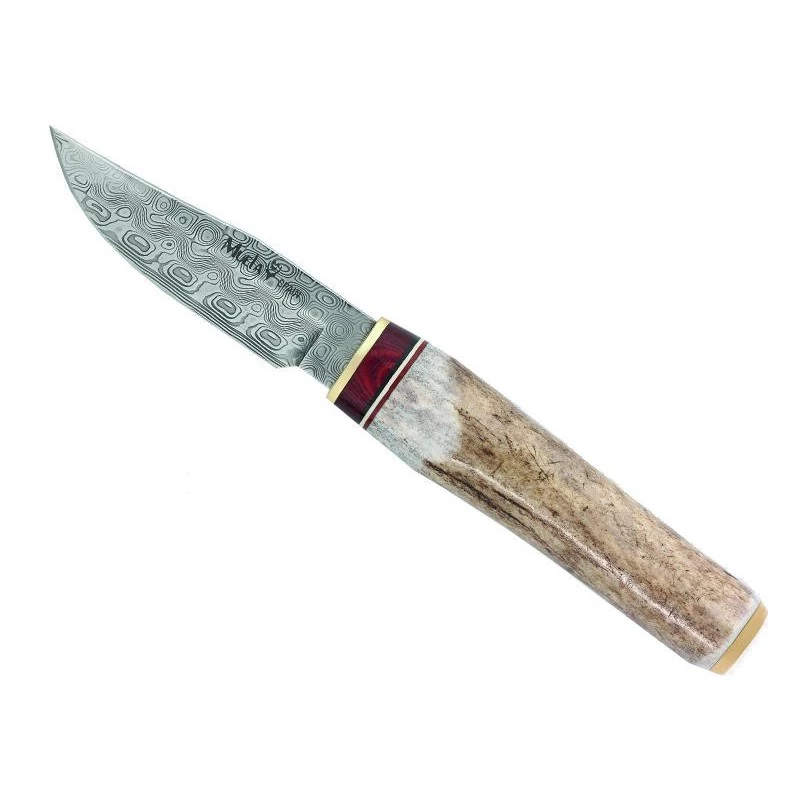 Le poignard Muela Bowie (référence 9248) dans sa version Collector. Il s’agit d’un poignard de collection muni d’une petite lame de 6cm de longueur fabriquée en acier damas. Il est composé à partir de 2 nuances d’acier : RWL 34 et PMC 27. Très élégante, la lame est aussi décorée par le logo Muela (fabricant Espagnol) en noir. Mais le poignard de collection Muela Bowie, c’est aussi un manche fabriqué essentiellement à base de bois de cerf véritable. Il faut bien noter la présence du mot “essentiellement” car le manche intègre aussi du stamina (bois et résine compressés à chaud). On peut le dire, comme pour la lame, le manche est très élégant et fera de nombreux adeptes. Livré en coffret parfait pour offrir, le poignard Muela Bowie 9248 est aussi vendu avec son bel étui en cuir façon iguane. Un modèle exceptionnel qui va ravir tous les collectionneurs fans de la marque Muela !